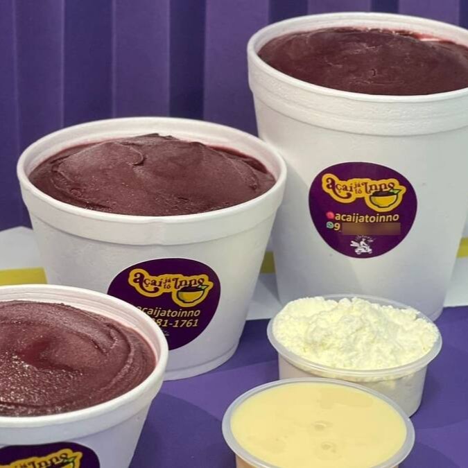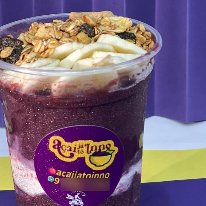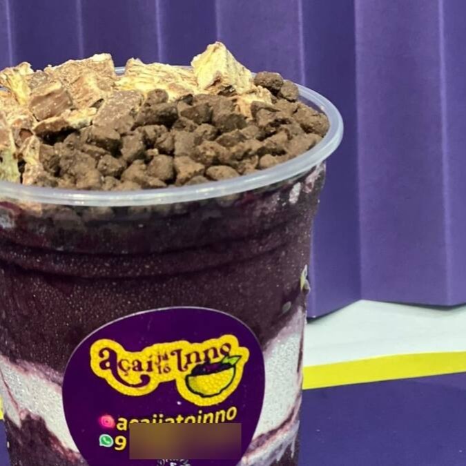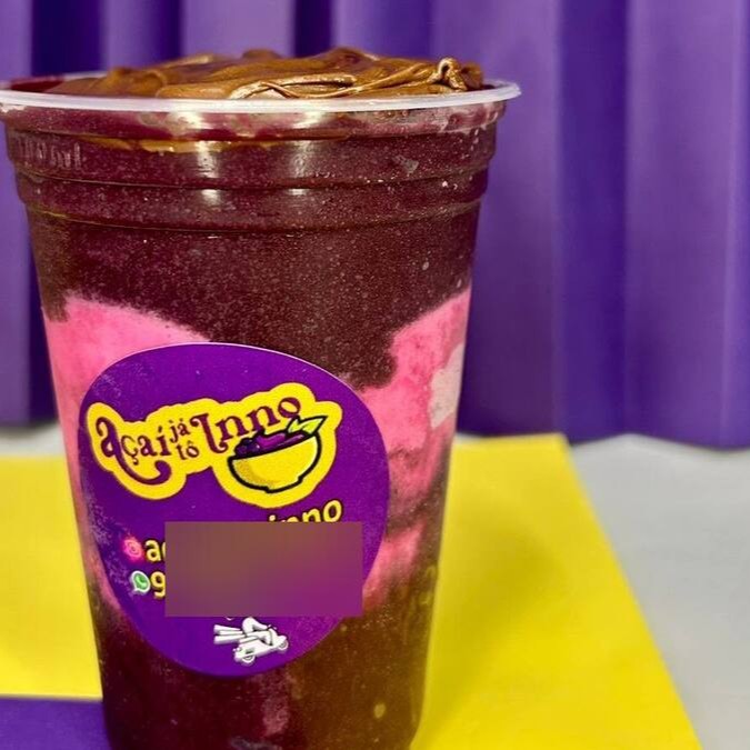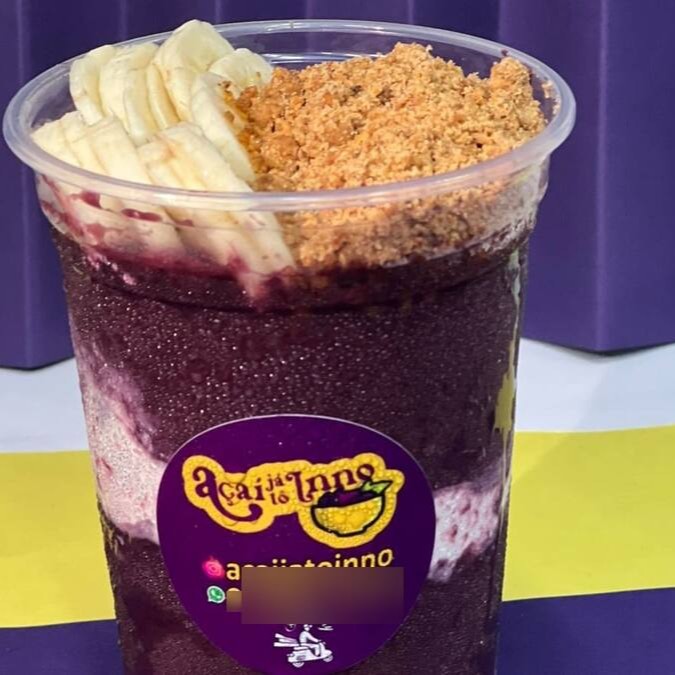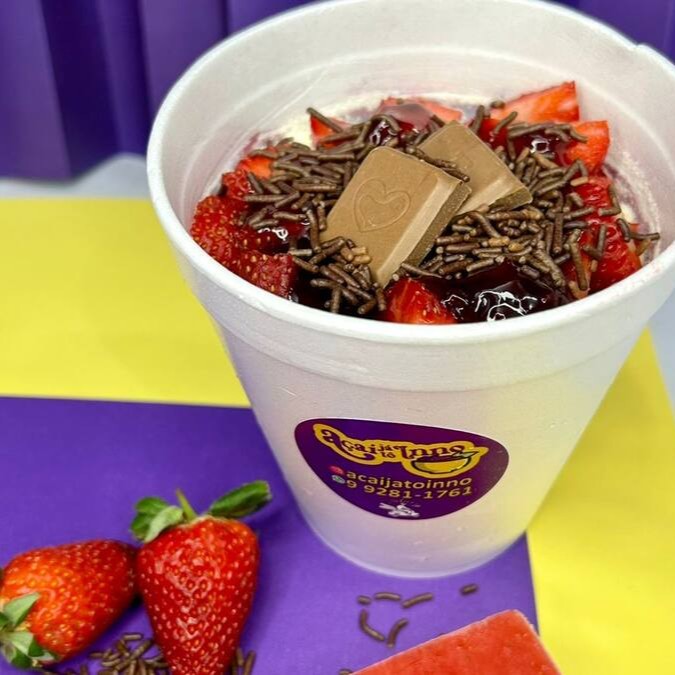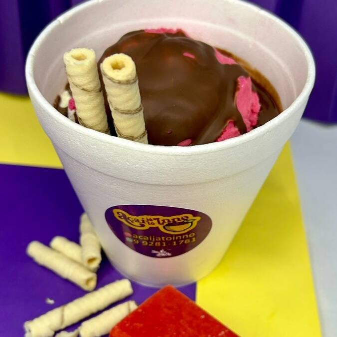 Açaí + Sorvete + Chocolate Belga + Creme Ninho + Leite em Pó + Canudo Bijú .