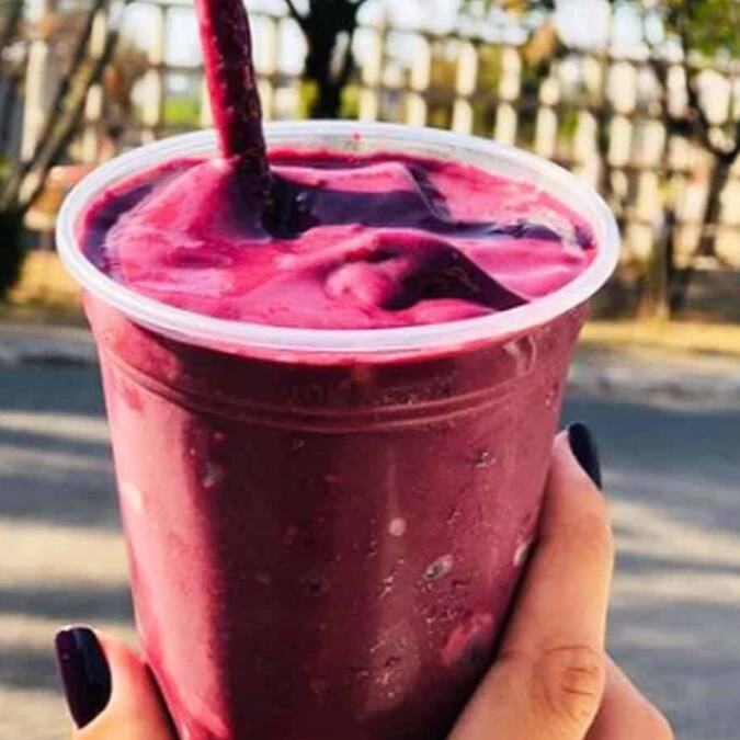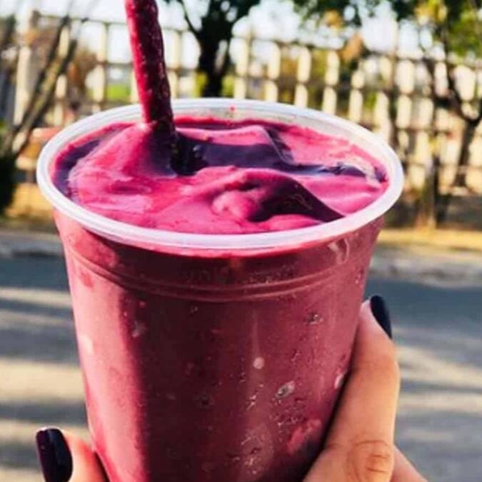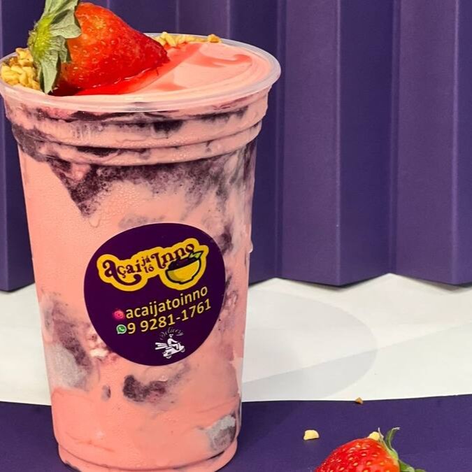 Açai , creme de Ninho ,leite em po, leite condesado , creme de avelã , morango ,canudo . 500ml