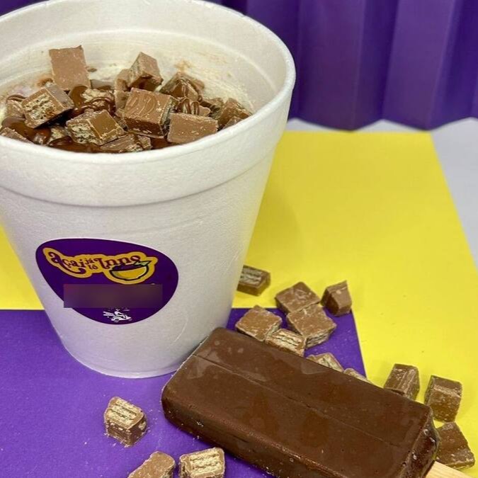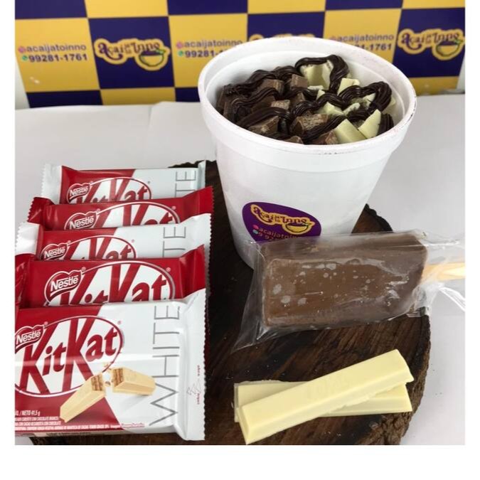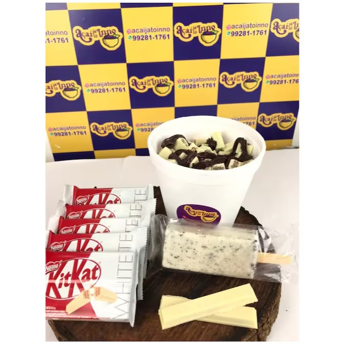 Açaí +leite em pó +leite condensado +paleta +kit-kat Branco +creme de avelã c/ chocolate