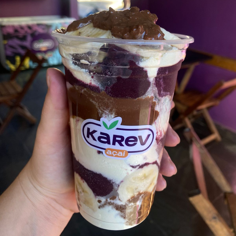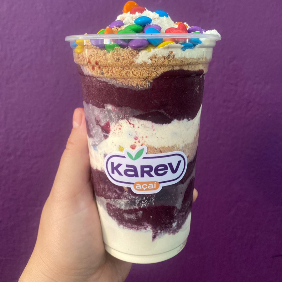 padrão Delicie-se com a combinação perfeita de creme de açaí, leite em pó, leite condensado, banana e granola. Como complemento leve após o almoço, doce final para o jantar ou até mesmo como uma opção nutritiva de lanche.300ml