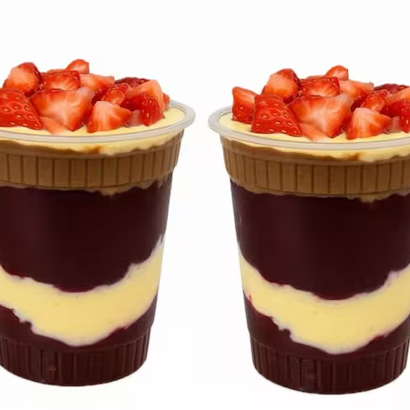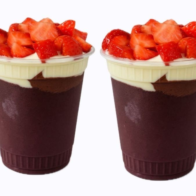 Dois Açaí King em uma irresistível versão mouse de maracujá com creme de avelã, finalizado com morango proporcionando uma incrível cremosidade ao seu produto