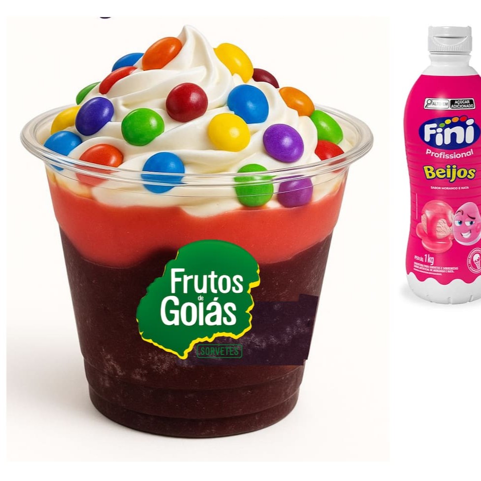 Deliciosa versão do melhor açaí Frutos de Goiás em um pote de 300ml recheado com as irresistíveis caldas da Fini, acompanhado por um cremoso chantilly, finalizado com confetes ou granulados coloridos.