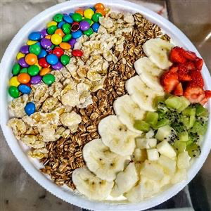 Seu delicioso Açaí King no pote de 300 ml com seus complementos preferidos adicionados ao copo do açaí.