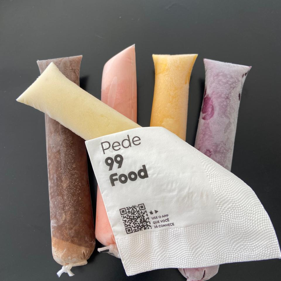 Delicioso chup chup gourmet, preparado com leite, leite condendado, creme de leite e a fruta.