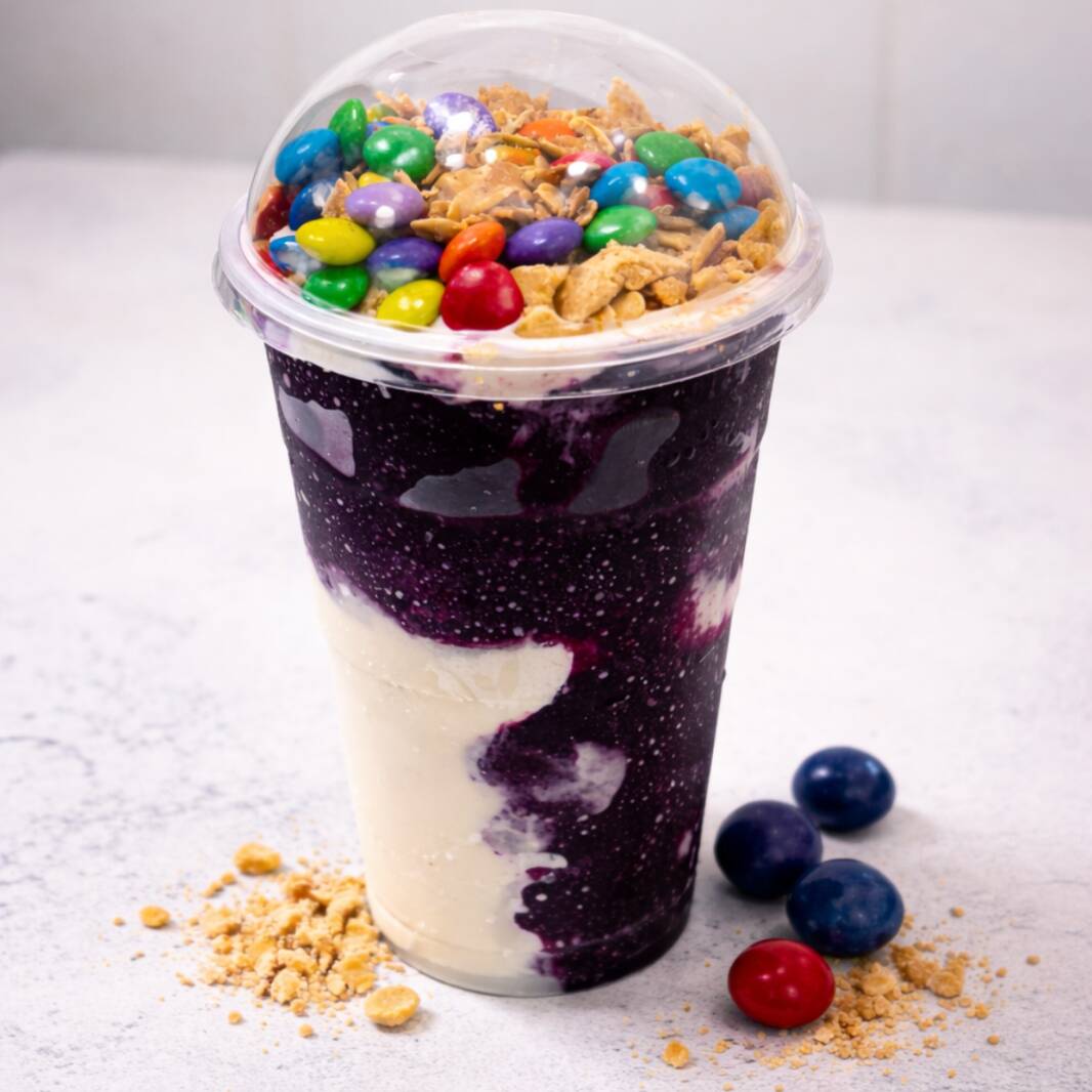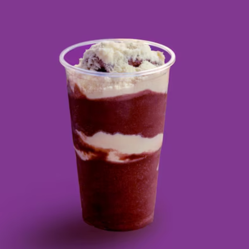 Açaí cremoso em camadas com creme trufado de Leite Ninho, finalizado com Disquetti colorido e granola crocante. Uma combinação perfeita de cremosidade, crocância e muito sabor.