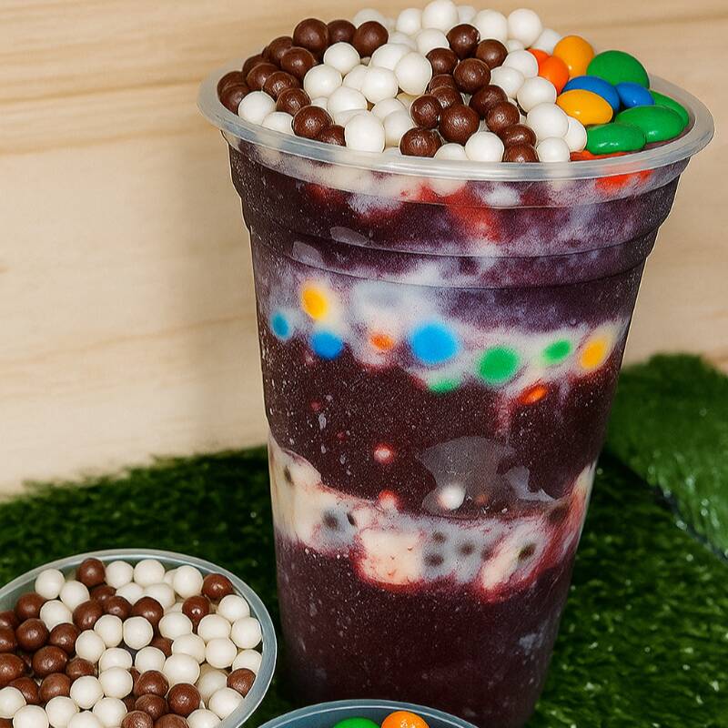 Creme de açaí saboroso com acréscimos para adicionar a escolha. Acrescimos enviados dentro do açaí em camadas.