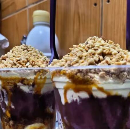 Açaí Caramelo - Açaí Com Banana, Cobertura De Caramelo E Paçoca Em Camadas