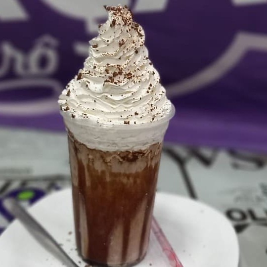 Acompanha a cobertura + chantilly + raspa de chocolate, caso seja selecionados.