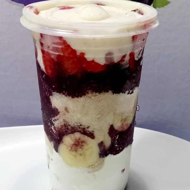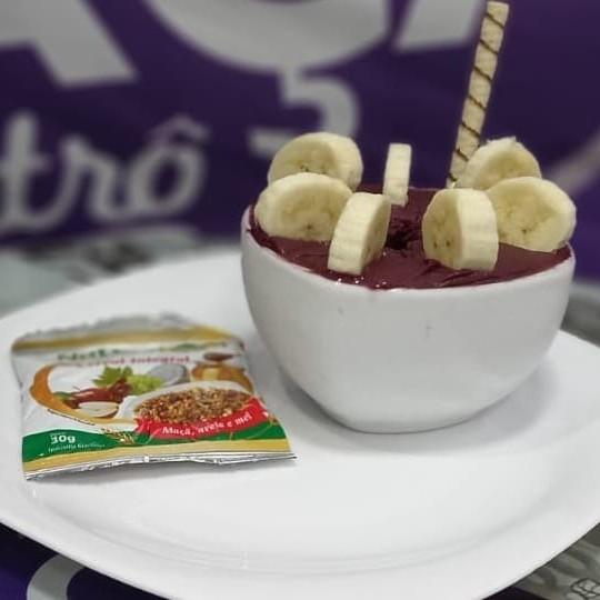 Metade açaí e metade cupuaçu. Acompanha banana e granola, case selecionar.