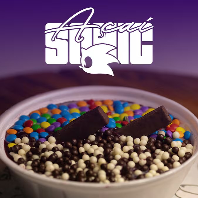 Creme de Açaí Premium, misturado com M&M's (confetes de chocolate) leite em pó, mousse refrescante de limão, chantilly leve e leite condensado cremoso, resultando em uma combinação refrescante.