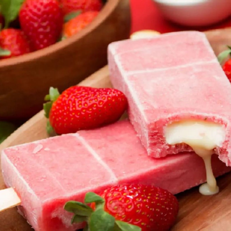 Paleta Morango Recheado Com Leite Condensado