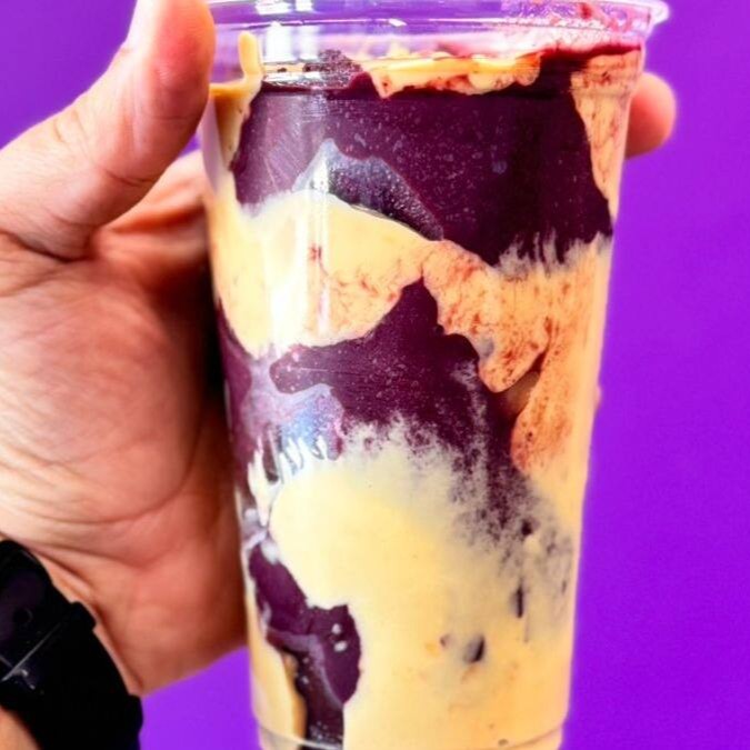 Esta deliciosa e nutritiva vitamina de açaí com duas camadas de recheio, escolhidas por você para enriquecer ainda mais a sua experiência.