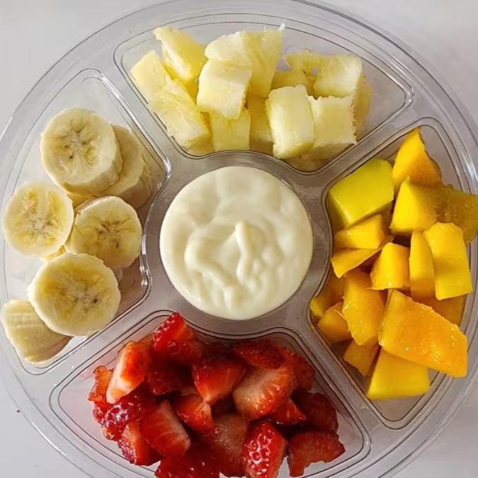 Apresentamos o 'Fondue Tropical', estrela dentre os nossos recentes lançamentos! Este prato é uma seleção primorosa das frutas mais suculentas e frescas, mergulhadas com elegância em um chocolate de sabor inigualável e requinte sem par. Cada pedaço dessa sobremesa esplêndida transporta para um oásis de sabores vibrantes e únicos, uma experiência só encontrada aqui. Uma harmonia perfeita que adiciona um toque especial a cada momento. Encante-se com este deleite tropical e apaixone-se irrevogavelmente à primeira mordida!