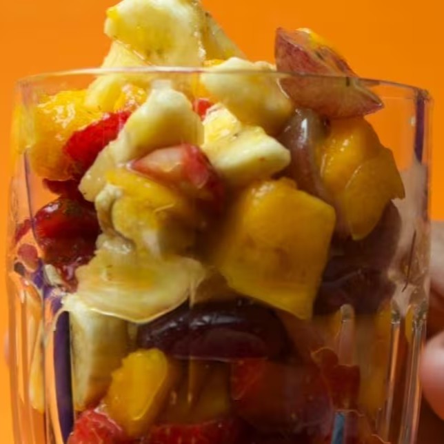 O 'Queridinho da Galera', a Salada de Frutas Fit 500ml, é uma mistura vibrante e deliciosa de frutas frescas e suculentas. Este prato padrão de 500ml está repleto de sabor, graças à combinação perfeita de bananas doces, uvas crocantes, morangos suculentos, abacaxi refrescante e manga tropical. Uma opção leve e saudável que é tão deliciosa quanto nutritiva, perfeita para qualquer hora do Dia e para qualquer tipo de paladar que aprecie o frescor e a doçura das frutas.