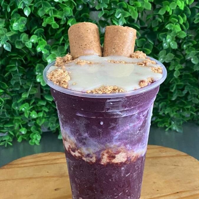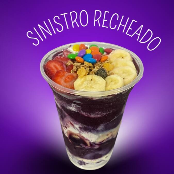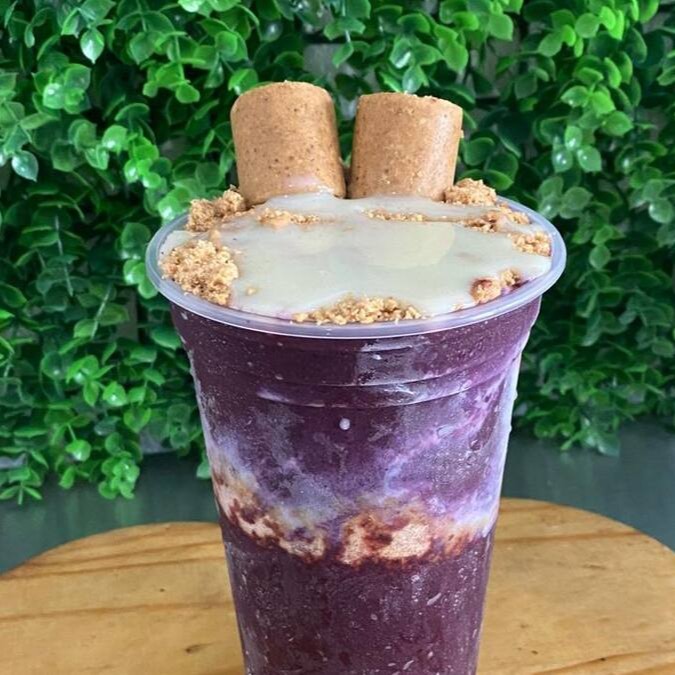 Creme de açaí, leite em pó, leite condensado, banana, morangos, granola e confetes. Uma verdadeira explosão de sabores em cada colherada!