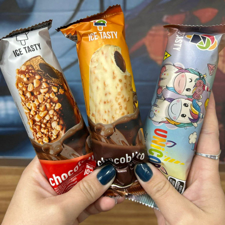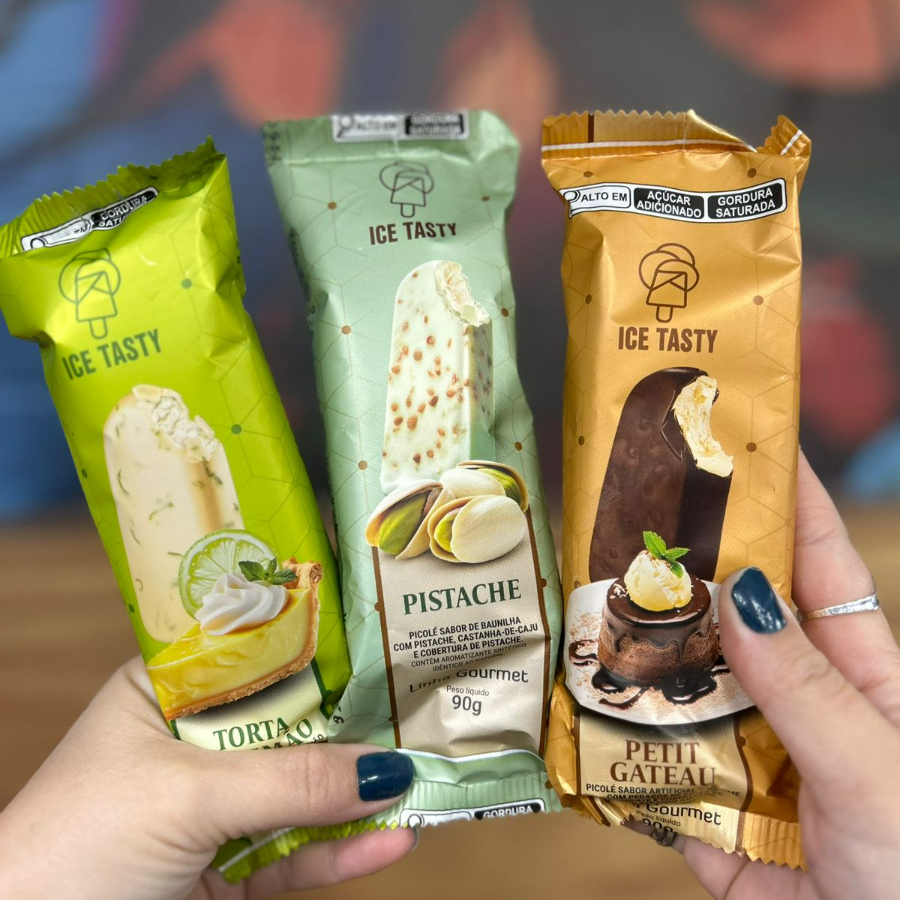 Desfrute da linha de picolés Ice Tasty Gourmet, desenvolvida para paladares que buscam sofisticação e ingredientes de alta qualidade. Picolés de 90g com sabores inspirados em sobremesas clássicas.