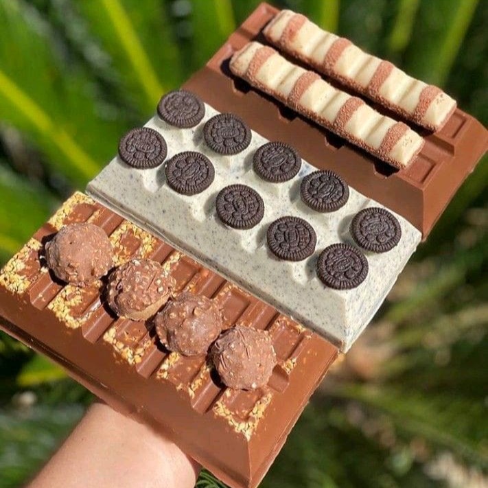 Barra trufada feita com chocolate meio amargo. No recheio temos brigadeiro meio amargo, Nutella pura e Original e amendoim torrado e crocante. Para deixar ela ainda mais incrível, adicionamos 4 bombons Ferrero Rocher por cima, a deixando ainda mais gostosa. Cheia de personalidade pra quem ama ferrero rocher e não abre mão de qualidade