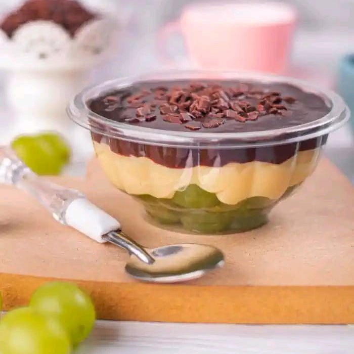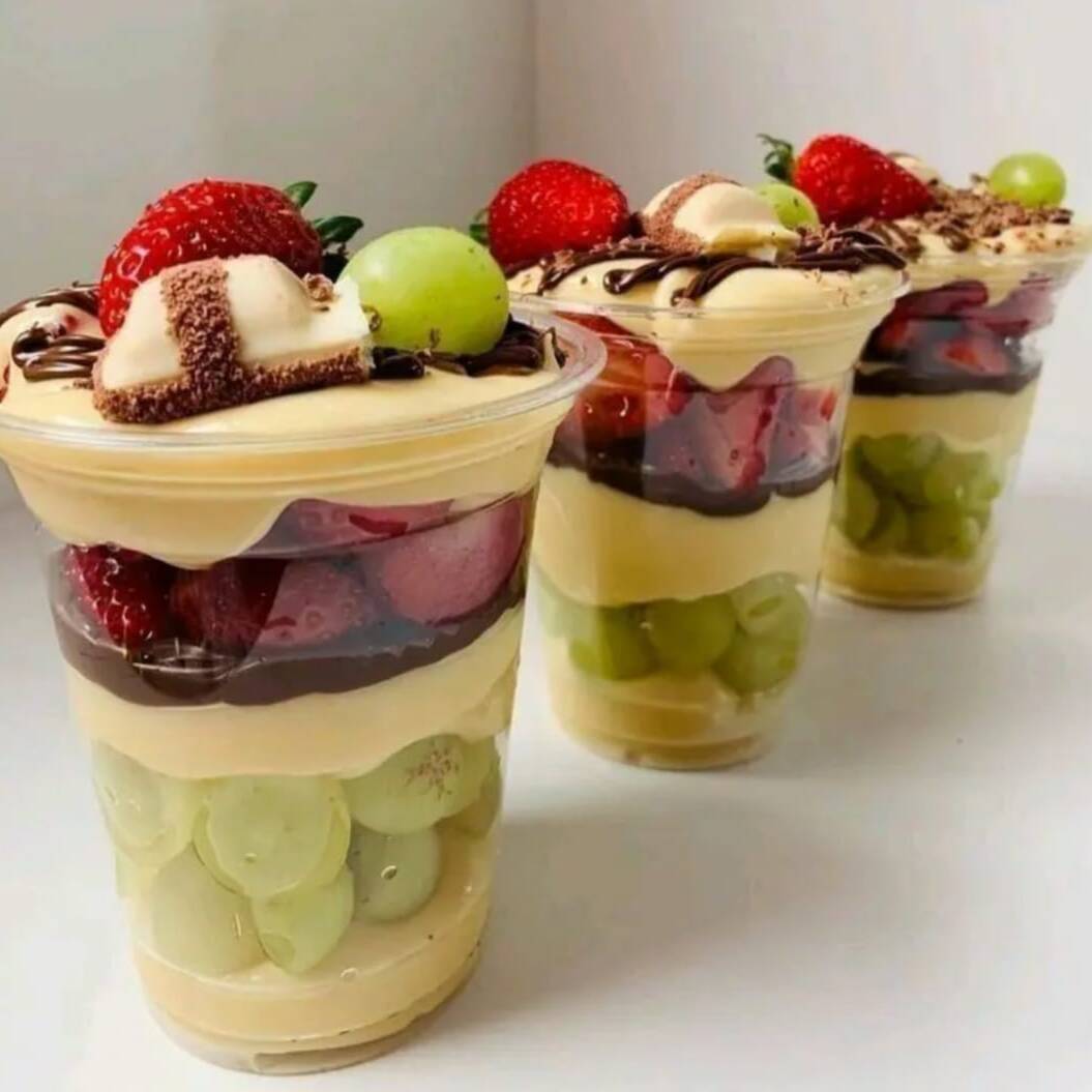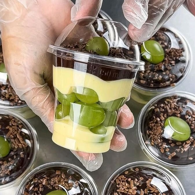 Nossa sobremesa P de uva é mara saciar qualquer um. Nela temos bastante uvas verdes no fundo, creme de Ninho e brigadeiro meio amargo por cima. Para finalizar, temos uva e granulê melken