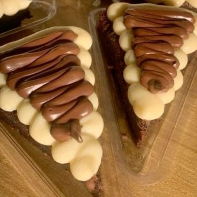 Nosso brownie fatia de pizza chegou com tudo. Recheio de creme de Ninho com Nutella Original pura por cima.