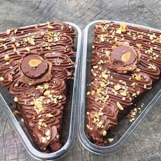 Nossa pizza brownie Ferrero Rocher é um sucesso. O chocolate que conquisou o coração de todos os brasileiros, agora na nossa versão. Com um generoso pedaço de brownie fresquinho em formato de fatia de pizza, nosso delicioso brigadeiro feito com cacau 70%, bastante Nutella Original para os apaixonados, amendoim triturado e torrado e um bombom ferrero rocher por cima. Aprecie o que muitos já são apaixonados.