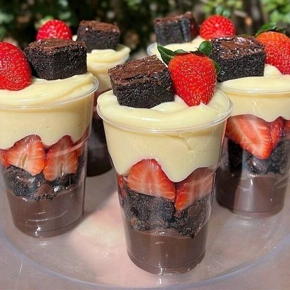 Copo Da Felicidade - Brownie Com Morango E Ninho