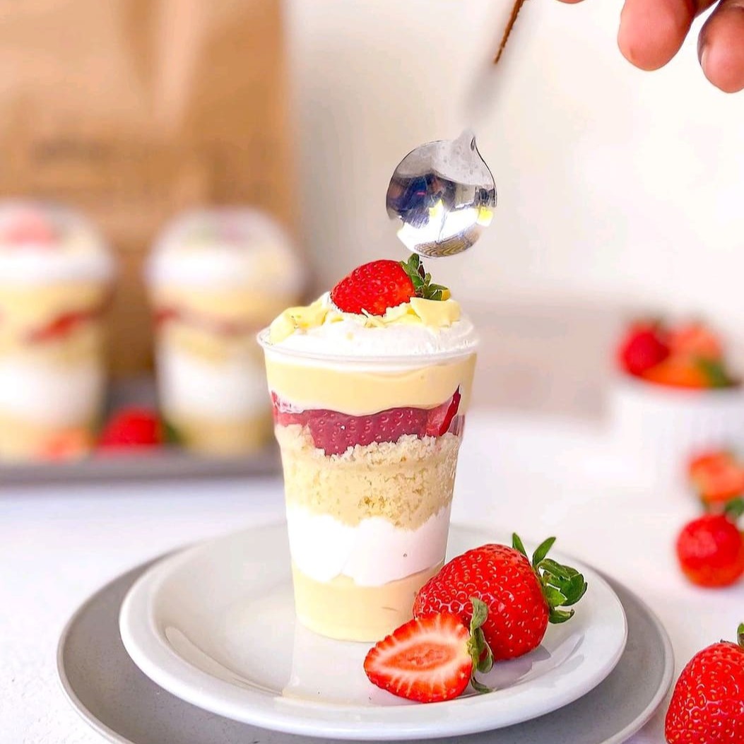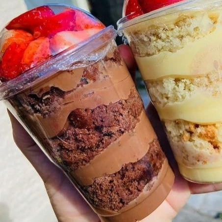 Delicioso bolo no pote de 300ml com recheio de Ninho, chantily batido na hora, bolo de massa de baunilha e morangos frescos e picados. Finalizamos com um morango inteiro e granulê melken branco