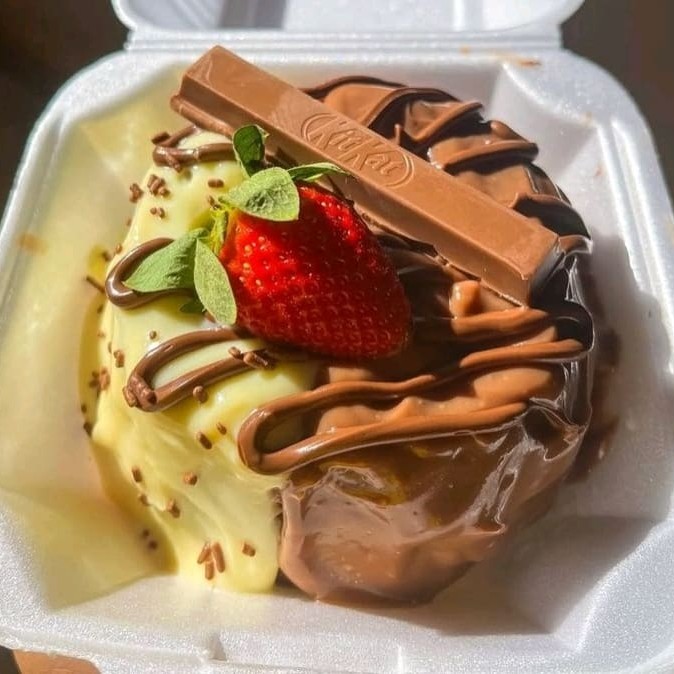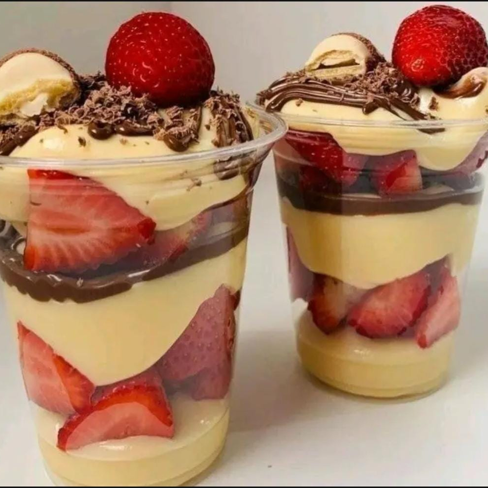 A sobremesa mais amada voltou por aqui. Nela temos APROXIMADAMENTE 700 GRAMAS, Com creme de leite ninho, morangos frescos e picados no meio e brigadeiro meio amargo por cima. Finalizamos com mais morangos