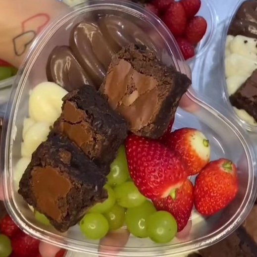 Petisqueira de coração com ninho e brigadeiro, brownie, morango e uva. Tamanho P, ideal para apenas 1 pessoas