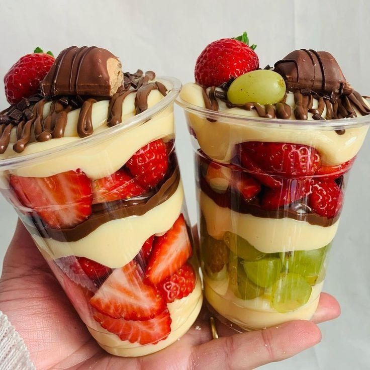 Nesse delicioso copo de 300ml, temos Ninho, uvas vesdes sem semente picadas, uma deliciosa camada de Nutella pura e oroginal, morangos selecionados e picados. Para finalizar, temos mais Nutella, uva, morango e Kinder bueno
