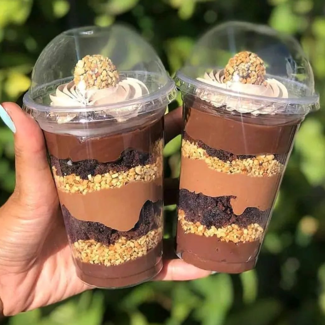 Copo da felicidade 200ml com creme de Ninho, pedaços de brownie, Nutella pura Original. Finaliza com ainda mais Nutella ( Foto do copo ilustrativa. É possível confirmar os Ml's no próprio copo)