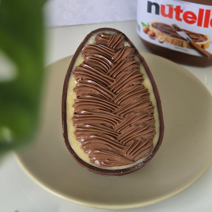 Ovo de colher ninho com Nutella 150g ninho com Nutella. Casca de chocolate meio amargo, recheio de ninho e Nutella por cima. Peso final pode chegar a 200g
