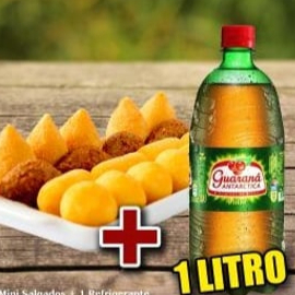25 SALGADINHOS SORTIDOS (sabores vão mistos de acordo com o que temos em estoque ) FRITOS NA HORA + REFRIGERANTE DE 1L (escolha entre guaraná, pepsi ou sukita)