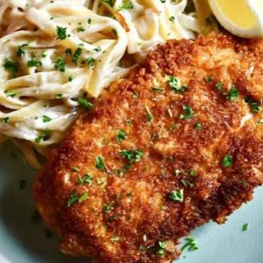 Linguine Ao Molho Alfredo Com Filé De Frango À Milanesa