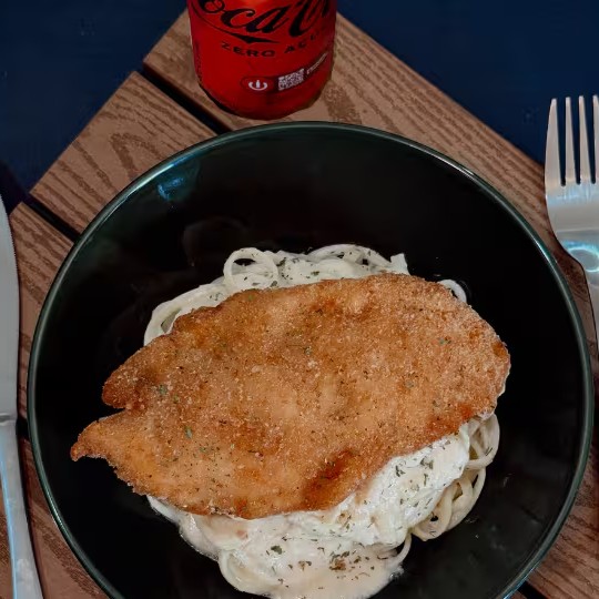 Linguine Alfredo Com Frango Milanesa + Coca