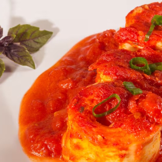 Delicioso filé de Tilápia empanado tradicional e frito, com nosso molho de tomate al sugo artesanal por cima e muito queijo derretido!