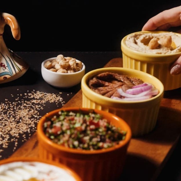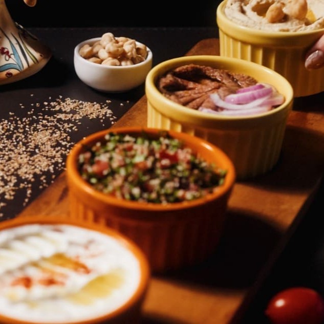 Escolhe 4 pastas a sua prefêrencia , Kibe cru , coalhada , homus , tabule, pasta de alho e Babaganush (120g de cada opção) acompanha 2 unidades de pão.