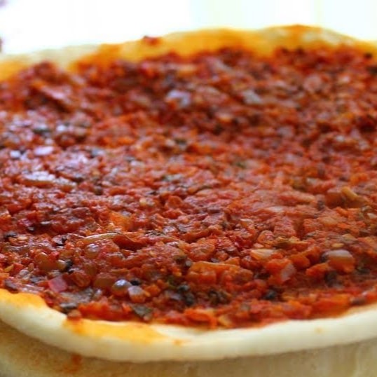 Pão sírio caseiro, carne moída , pasta de alho, picles caseiro ,tempero picante.