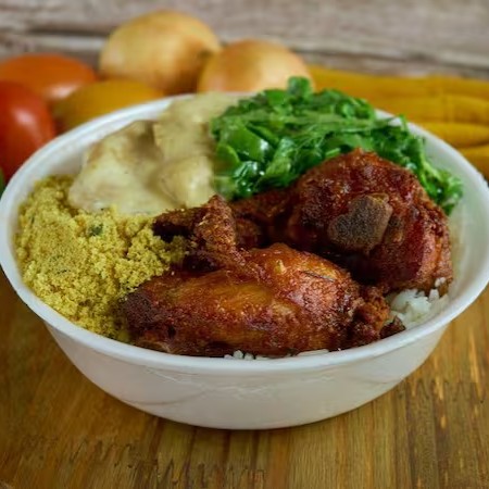 Apresentamos um Marmitex exuberante, cuidadosamente recheado com itens selecionados de um buffet impecável.