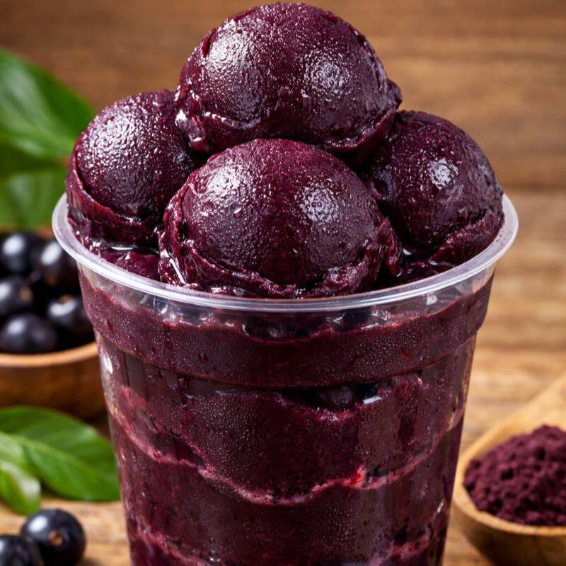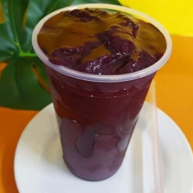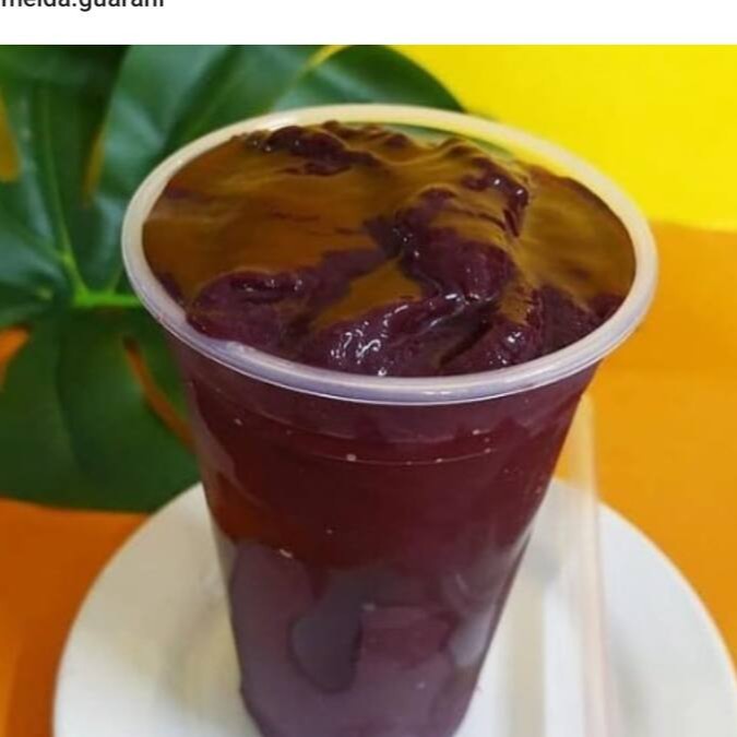 acai batido com agua e xarope de guarana .