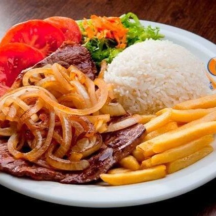 Acompanha: Arroz, feijão saboroso, bife a sua escolha, batata frita e salada