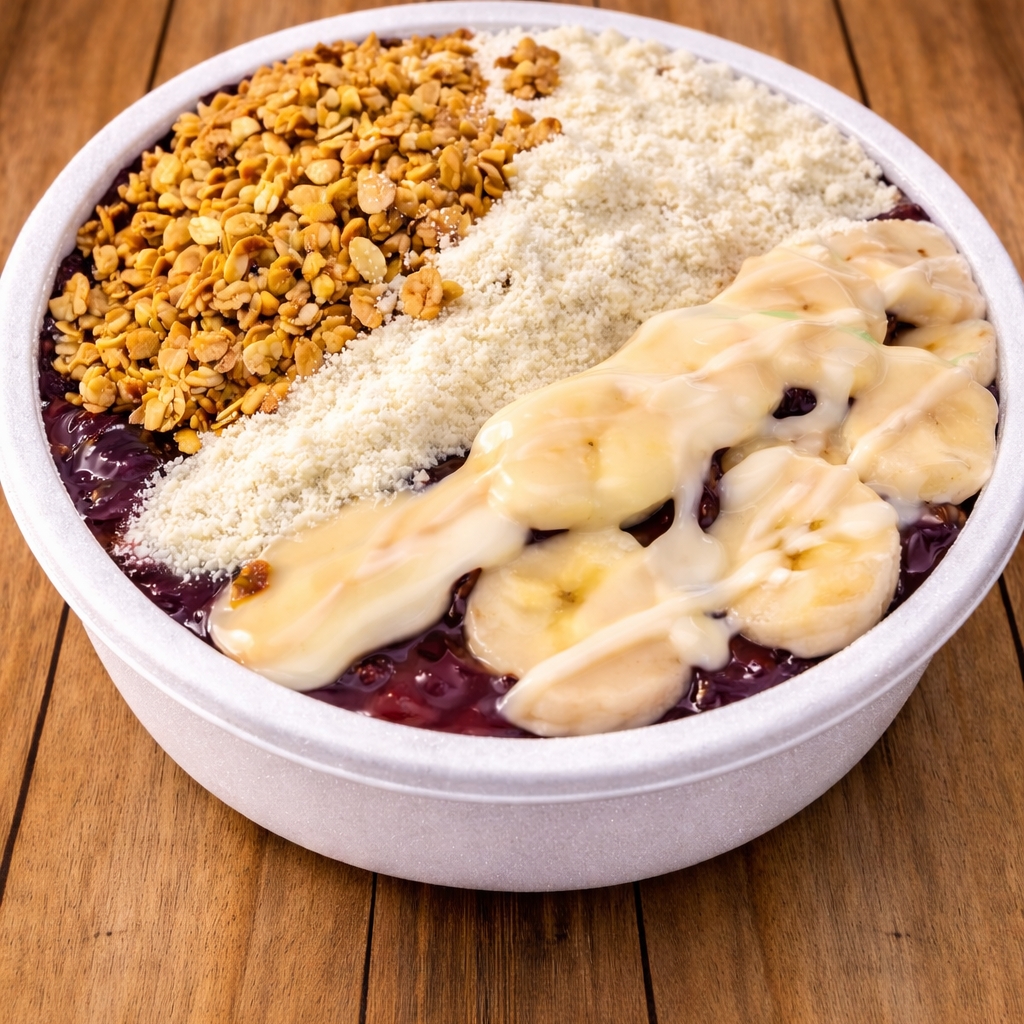 Creme de açai, Leite em pó, Banana, Granola, Leite condensado