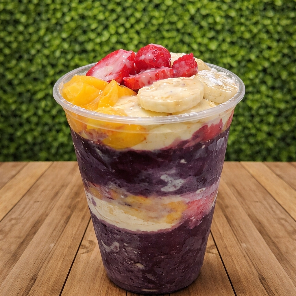 Creme de Açaí, Leite em Pó em Camadas, Manga, Chantinho, Leite condensado