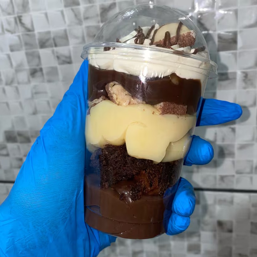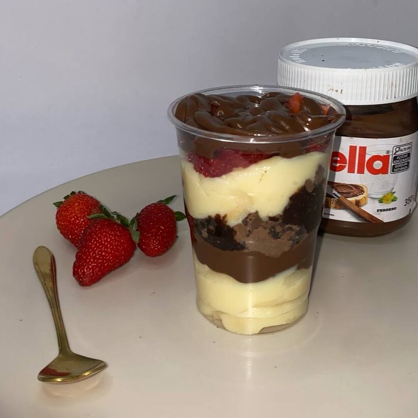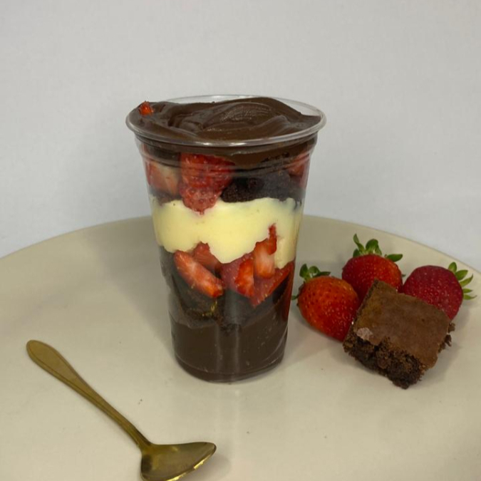 Uma camada cremosa de Ninho, nutela, nosso brownie 50% cacau maravilhoso e morango esse copo é uma sensação de sabores maravilhoso