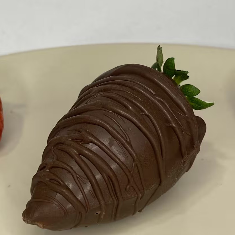 Morango enrolado no brigadeiro de leite Ninho e banhado no chocolate meio amargo.