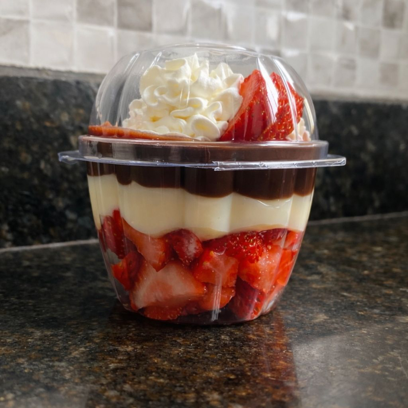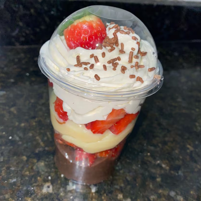 Nosso delicioso copo sensação tem uma camada de brigadeir, morangos selecionados, Ninho cremoso, e pra finalizar musse de Ninho pra dar aquele toque maravilhoso