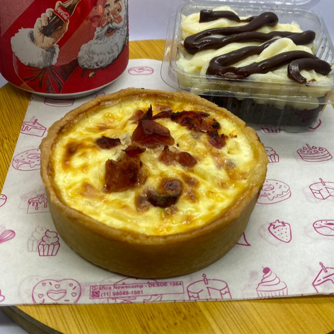 Nosso Combo Com Uma Quiche De Bacon + Escondidinho De Brownie De Ninho Com Nutella Acompanhado + Coca Cola De Lata 350 Ml