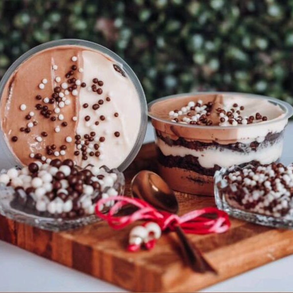 O bolo de pote dois amores é uma combinação deliciosa feita com dois sabores clássicos e irresistíveis: brigadeiro 50% e brigadeiro branco .Combinação perfeita entre dois amores.