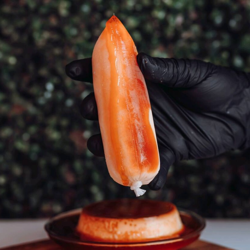 Delicia de Chup chup gourmet, verdadeiro pudim no saquinho em forma de sorvete .