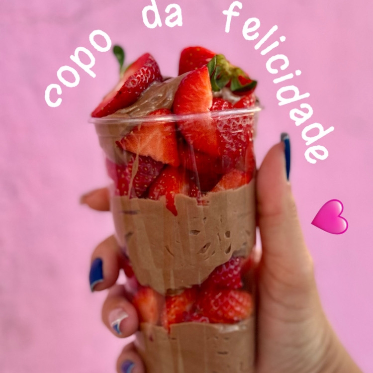 Nosso Copo da Felicidade é feito para quem ama sobremesa de verdade: camadas generosas de creme de brigadeiro 50% cacau e morangos frescos, irresistíveis. Cada colherada é pura felicidade!