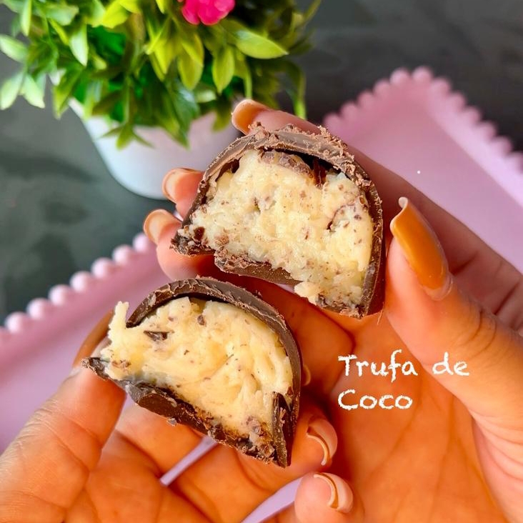 deliciosa trufa de coco, cremosa cada mordida e uma sensaçao maravilhosa